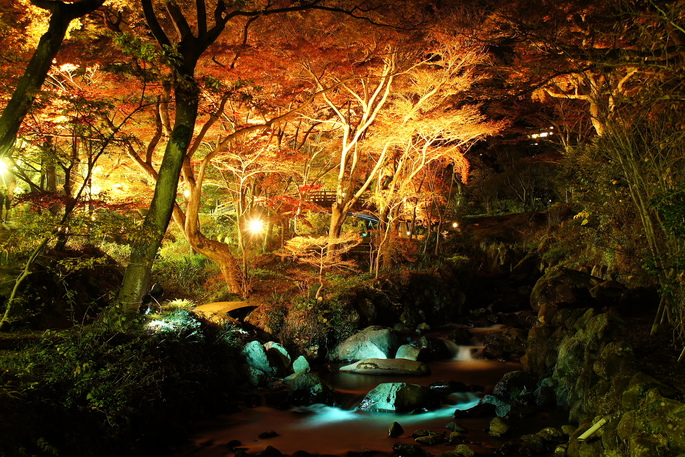「日本一早咲きの梅」で知られる熱海梅園は、実は紅葉スポットでもあります。 園内にはカエデ類が380本あり、温暖な気候のせいか、毎年11月下旬から12月にかけて色づくため 「日本一遅い紅葉」とも言われています。 早咲きの梅は11月中旬あたりから開花が始まるので、紅葉と梅が同時に見られることも。 もみじまつり期間中は、毎年恒例の足湯開設、熱海梅園もみじまつりフォトコンテスト、ジャズライブ(期間中日曜祝日)、「もみじライトアップ」等を実施します。