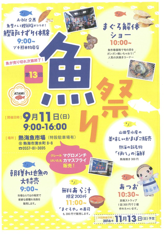 | イベント名 | 【山田屋のおでかけSHOP】熱海魚市場♪お魚祭り |