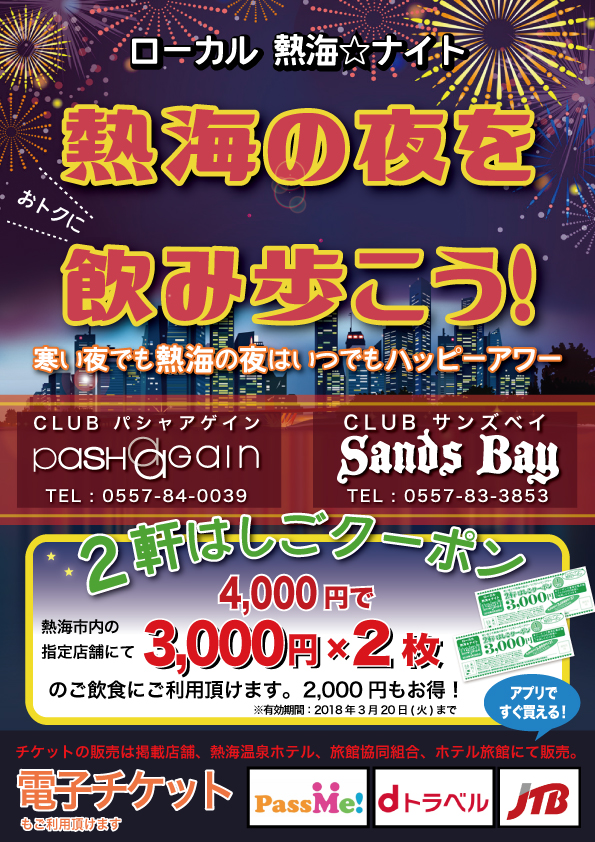 | イベント名 | 熱海の夜を飲み歩こう!二軒はしごクーポンご利用いただけます! |